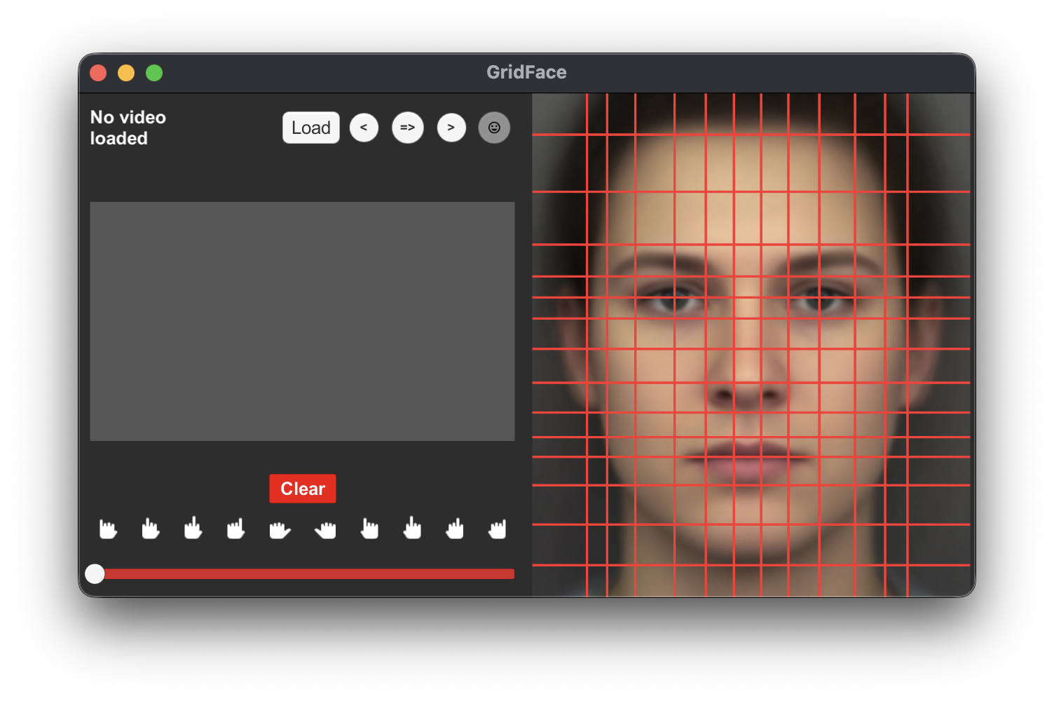Gridface is the application that facilitates the analysis and behavioral coding of videos of hands exploring masks.